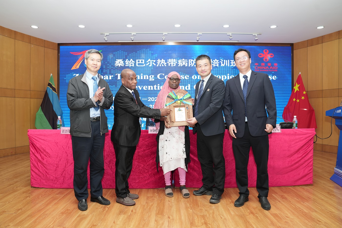 本次培训班为双边培训班,旨在针对我所承担的血吸虫病技术援外项目所在地区的外籍专业技术人员开展培训。来自桑给巴尔的26名公共卫生领域专业技术人员聚首无锡,共同学习中国热带病防控经验,深化热带病防控领域合作成果。桑给巴尔卫生部被忽视热带病办公室项目协调主任Mr. Saleh Juma Mohammed代表学员发言,并代表桑方向中方赠送象征友谊的“桑给巴尔之门”国礼,表达诚挚谢意。