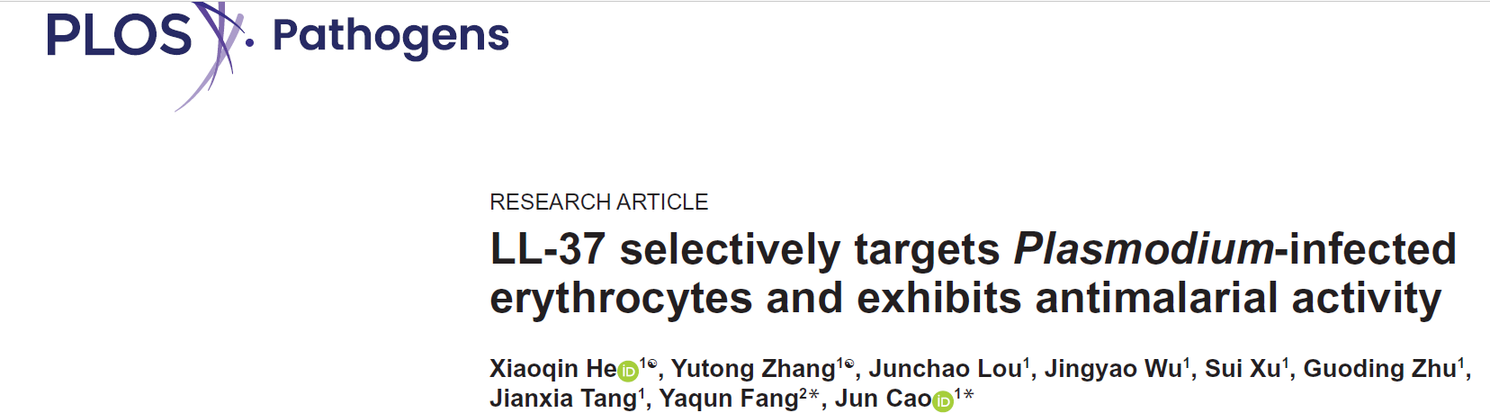 论文信息:LL-37 selectively targets Plasmodium-infected erythrocytes and exhibits antimalarial activity. PLOS Pathogens, 2026.