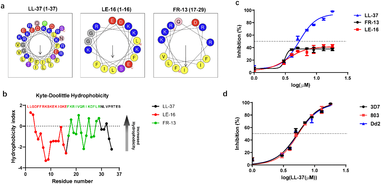 研究结果显示,疟原虫感染会重塑红细胞膜结构,引发磷脂酰丝氨酸外翻、胆固醇耗竭两大病理改变,这正是 LL-37 精准识别感染红细胞的关键标志物。相较于健康红细胞,感染红细胞膜完整性受损、脂质微环境紊乱,对 LL-37 的敏感性显著提升。实验数据证实,LL-37 具有靶向感染红细胞的高度选择性。同时,LL-37 对疟原虫红细胞内期全阶段均有抑制作用,其中对裂殖体期杀伤效力最强,可全方位阻断疟原虫在红细胞内的增殖周期。机制研究进一步揭示,LL-37 的抗疟作用靶点为宿主红细胞的病理膜结构,这一独特特性使其能有效规避药物外排、酶突变等传统耐药机制。跨株系验证实验表明,LL-37 对药物敏感株(3D7)、氯喹耐药株(Dd2)、青蒿素耐药株(803)的 IC??值近乎一致,杀伤活性不受耐药基因突变影响,是对抗多重耐药疟疾的潜在利器。